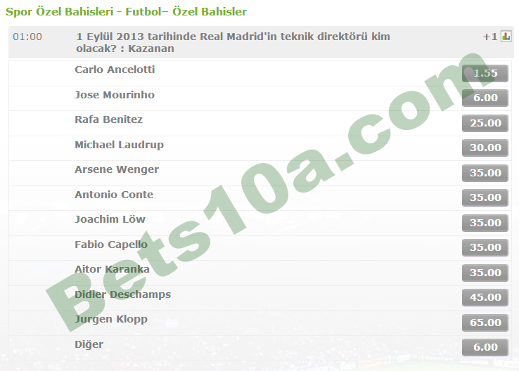 Bets10 sadece karşılaşmalar için maç skoru ile ilgili tahminleriniz için bahis oynatmıyor. Ligin şampiyonu kim olur, gol kralı kim olur, sezonda en çok golü hangi takım atar gibi bahislerde oynatmakta. Bunlardan bir tanesi’de “1...